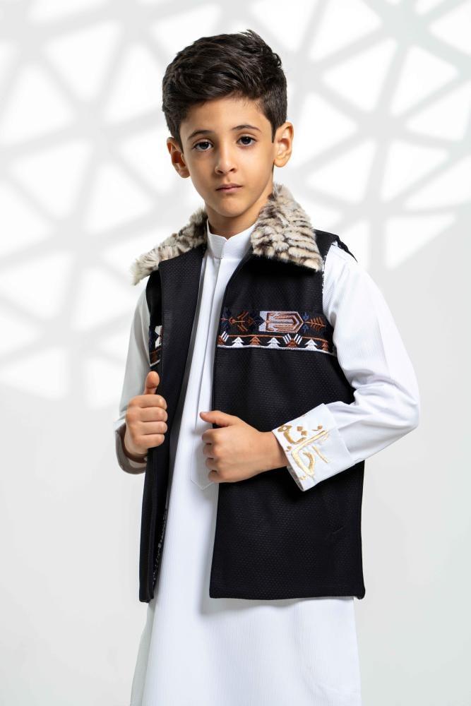 سديري خلية أسود بياقة فرو ايطالي